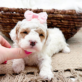 Their mom is an F1b Cavapoo & dad is a Mini Poodle. Both parents are around 11-12lbs. Our puppies are all raised with children and around other animals. They are very well socialized and family raised. Each puppy will come with their own puppy starter kit which contains a collar/leash, toy, treat, food sample, CKC application, 1yr health guarantee with spay/neuter contract, veterinarian examination, current vaccinations/deworming.