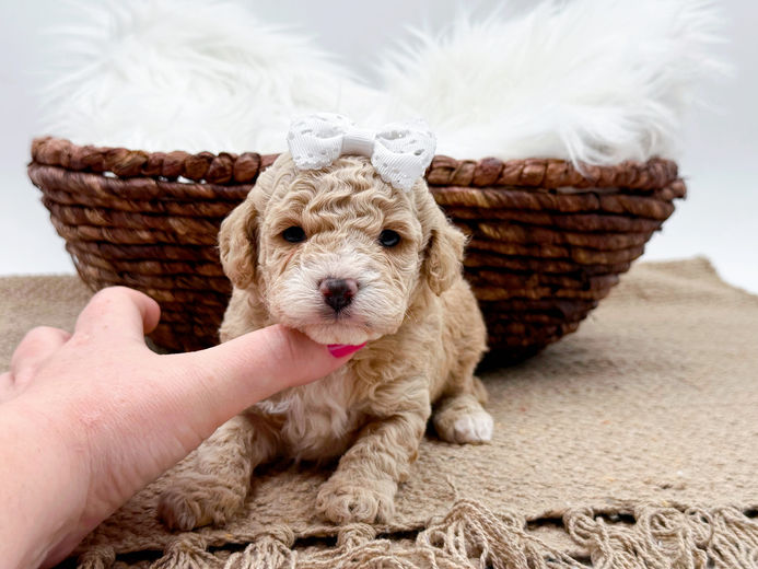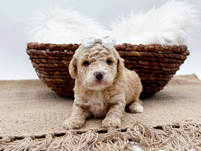 Their mom is an F1b Cavapoo & dad is a Mini Poodle. Both parents are around 11-12lbs. Our puppies are all raised with children and around other animals. They are very well socialized and family raised. Each puppy will come with their own puppy starter kit which contains a collar/leash, toy, treat, food sample, CKC application, 1yr health guarantee with spay/neuter contract, veterinarian examination, current vaccinations/deworming.