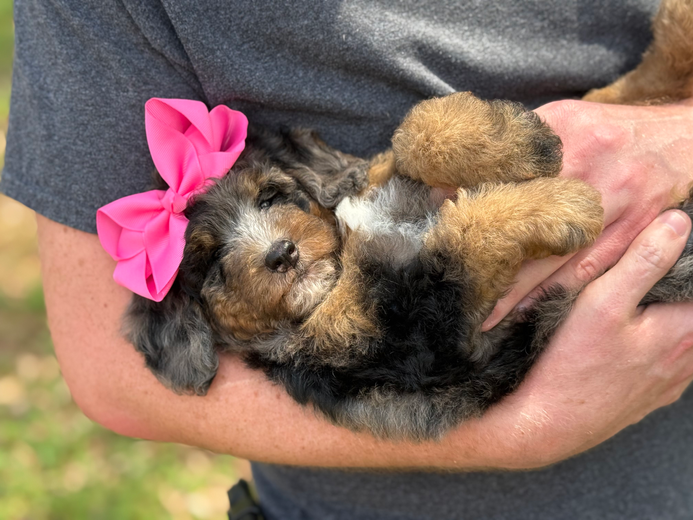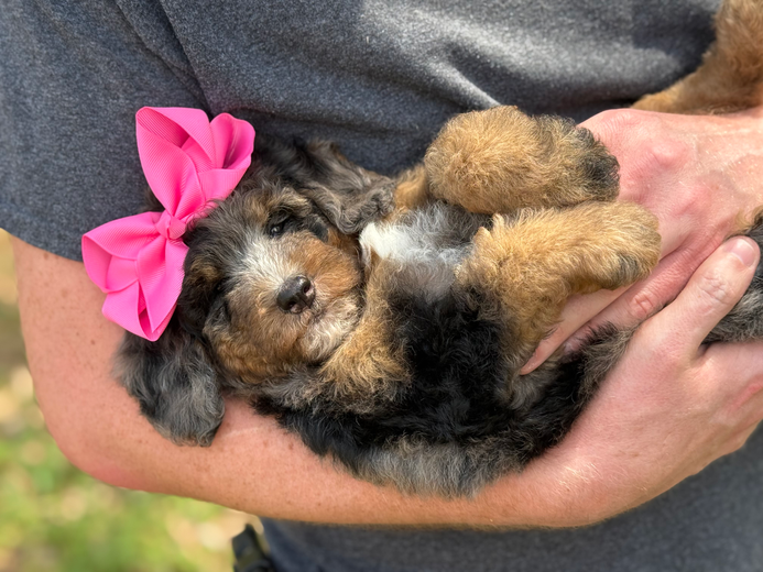 MultiGen Miniature Bernedoodles available from Duke & Amy. They are allergy friendly with their beautifully fully furnished coats.